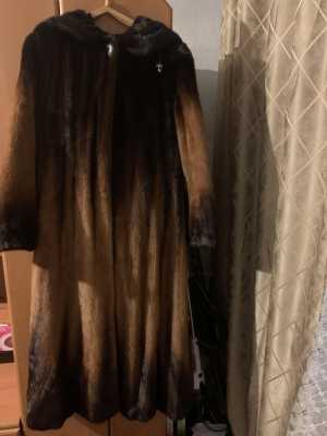 Шуба норковая с капюшоном, коричневого цвета. Размер 38 XSS, высота 60см, длина рукава 52см.С карманоми
