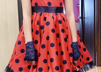 Платье в крупный горох. В комплект входят: митенки и атласная повязка на голову. В идеальном состоянии, одевалось один раз.